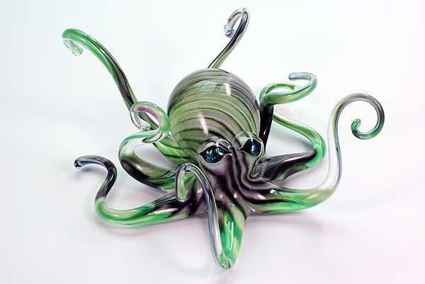… Michael has long been recognized for his uniquely colored octopus. As his skills increase, so has his portfolio. Quickly gaining in popularity are the Salt Water Fish, such as the Yellow and Blue Fin Tuna, Mahi Mahi and Great White Sharks. Michael gains his creative energy from his family, friends and many interests. He is driven by the desire to dedicate his life mastering a personal interpretation of nature recreated and preserved in glass. Michael Hopko continues to aspire to new heights. You can look forward to many more amazing aquatic blown glass art sculptures from this finely skilled artist. Hopko Art Glass is located in the Trinity Alps of Northern California. Artist Michael Hopko has created a collection of hand-blown sculptures combining art and craftsmanship. The beauty and motion of nature are captured through glass in stunning detail.
